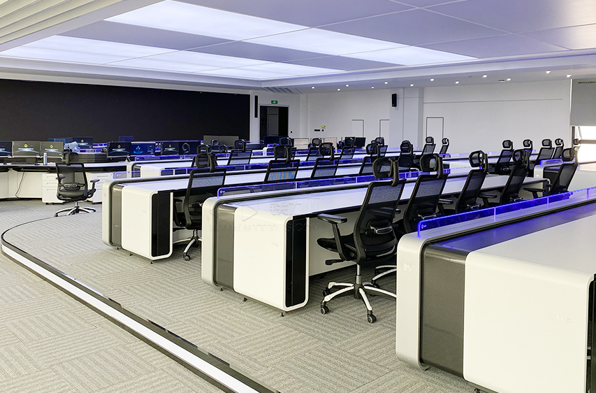 在綜治中心大廳,以鐵力山采用家族化語言設計的智領系列“領帥”控制臺和條桌為基礎,實現(xiàn)以任務為導向的控制臺布局方案,通過多角度模塊自由組合搭配,打造更為靈活多變工作場域,另整個空間更加和諧統(tǒng)一。
