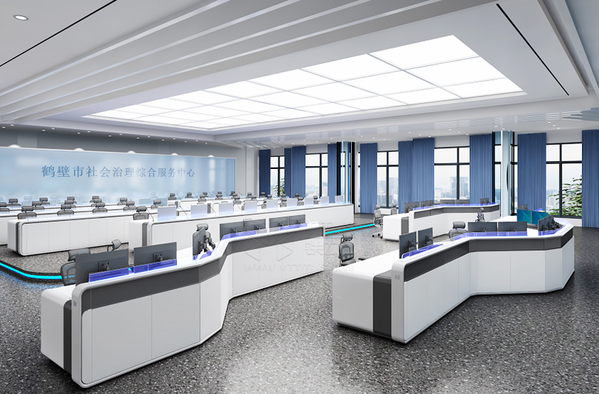 綜治中心是新時代基層社會治理的組織模式和運轉平臺,鐵力山在為鶴壁市綜治中進行設計規(guī)劃時,結合業(yè)務使用需求,通過控制臺+坐席一體化解決方案的整體部署,幫助用戶在項目設計階段,合理進行席位規(guī)劃、顯示器數(shù)量規(guī)劃,供電,安裝,走線,通風及音視頻系統(tǒng)整合、信號調用控制等功能性規(guī)劃。